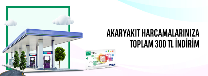 TEB Ticari Banka Kartı ile Akaryakıt Harcamalarınıza Toplam 300 TL İndirim!