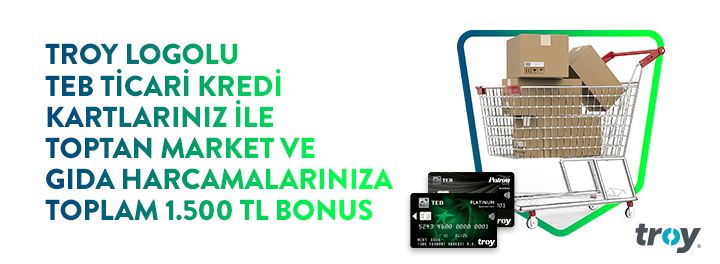 TEB TROY Ticari Kredi Kartlarınız ile Toptan Market ve Gıda Harcamalarınıza Toplam 1.500 TL Bonus!