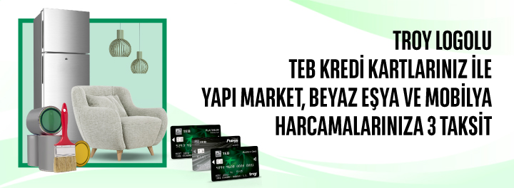 TROY TEB Ticari Kredi Kartları ile Yapı Market, Beyaz Eşya, Mobilya Harcamalarınıza 750.000 TL’ye kadar Ücretsiz 3 Taksit Fırsatı!