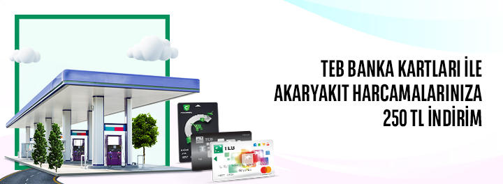 TEB Bireysel Banka Kartları ile Akaryakıt Harcamalarınıza 250 TL İndirim!
