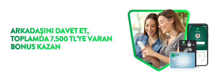 Hemen arkadaşını CEPTETEB’e davet et, Bonus özellikli kredi kartı başvurusu onaylanınca hem sen hem de arkadaşın 750 TL Bonus kazanın.