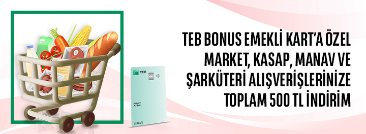 TEB Bonus Emekli Kartınıza Özel Market ve Gıda Harcamalarınıza Toplam 500 TL İndirim!