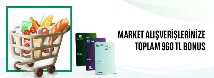 Market ve Gıda Harcamalarınıza Toplam 960 TL Bonus!