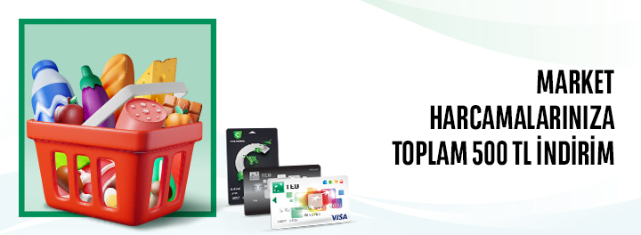 • Kampanya market, kasap, manav, şarküteri ve çeşitli gıda harcamalarında geçerlidir.