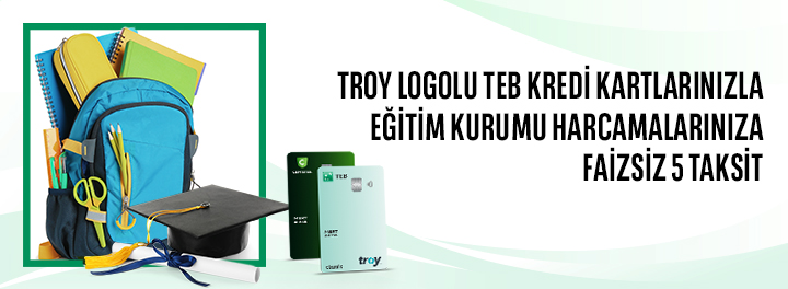 TROY Logolu TEB Kredi Kartlarınızla Eğitim Kurumları Harcamalarınıza Faizsiz 5 Taksit!