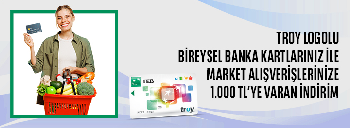 - TEB TROY Logolu Banka Kartınız ile 12 Kasım-12 Aralık 2025 tarihleri arasında harcadığınız kadar toplam 250 TL indirim kazanabilirsiniz.